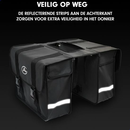 De populaire AG Fietstas is één van de sterkste en stijlvolste fietstassen. Deze tas heeft een extra grote inhoud van maar liefst 46 liter! De fietstas is waterafstonded en houdt je spullen droog als het regent. Genoeg plek voor al je boodschappen die niet nat worden. Deze duurzame tas is geschikt voor alle soorten fietsen waaronder ook elektrische fietsen.