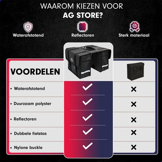 Wij maken onze producten met passie. Wij letten op de kleinste details en willen de hoogste kwaliteit leveren. Wij zijn overtuigd van de kwaliteit van onze producten en bieden daarom voor al onze producten een 100% tevredenheidsgarantie aan. Wij bieden een garantietermijn aan van 2 jaar, maar ook na deze 2 jaar kan je ons altijd benaderen om gezamenlijk tot een oplossing te komen. Bevalt de AG Fietstas? Ontvang je van ons gewoon je geld terug. Kort maar krachtig: Niet goed? Geld terug!