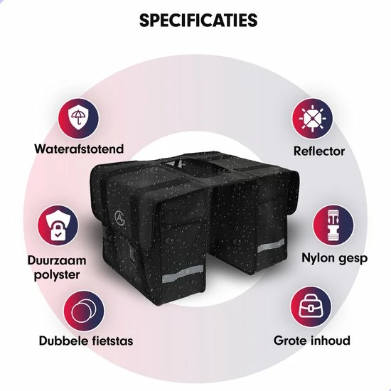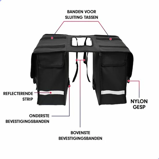 Deze fietstas is speciaal ontworpen voor alle soorten fietsen. Zo kan de tas gebruikt worden voor reguliere fietsen, elektrische fietsen maar ook sportieve fietsen.Middels vier verstelbare riempjes bevestig je de fietstas gemakkelijk op de fiets. Dankzij de verharde bodem zijn de fietstassen enorm stevig. De fietstassen staan goed open waardoor je gemakkelijk je spullen erin kunt stoppen.