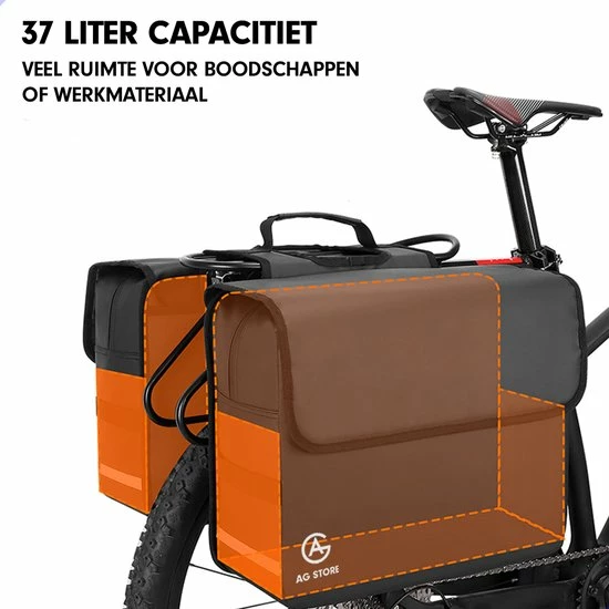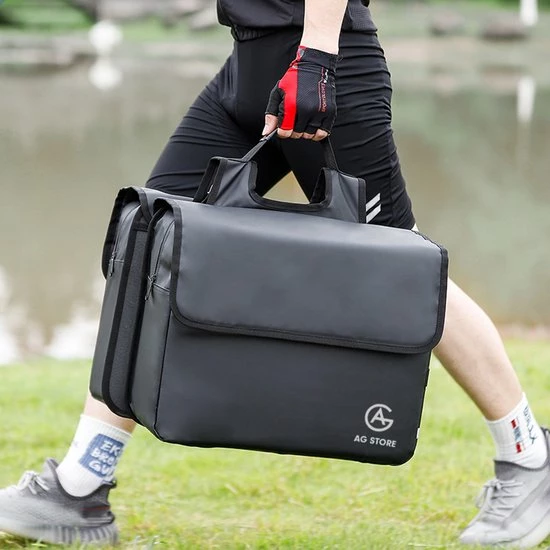 De populaire AG dubbele Fietstas is een van de sterkste en stijlvolste fietstassen. De fietstas is 100% waterproof en houdt je spullen droog als het regent. Deze duurzame tas is geschikt voor alle soorten fietsen waaronder ook elektrische fietsen. Met de AG fietstas heb je de perfecte tas voor op je fiets.