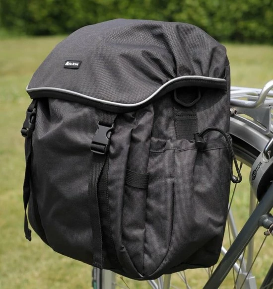 Zijtas voor voor- en achterdragers. Voorzien van handvat, met rits afsluitbaar voorvak en handige zijvakjes. Inclusief schouderriem. Bevestiging door middel van instelbare Variohaken. Inhoud: 12 liter Afmeting: 30 x 29 x 13 cm Gewicht: 675 gram
