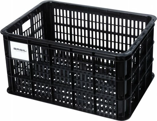 De Basil fietskrat in de maat L is een zwarte fietskrat voor op een dames- of herenfiets. De fietskrat is gemaakt van duurzaam materiaal en heeft een inhoud van 40 liter.