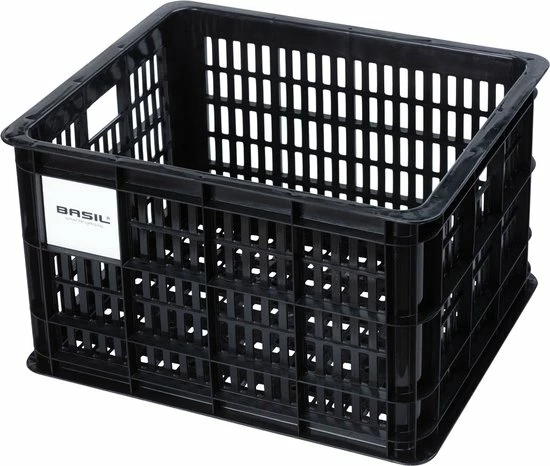 De Basil fietskrat in de maat M is een zwarte fietskrat voor op een dames- of herenfiets. De fietskrat is gemaakt van duurzaam materiaal en heeft een inhoud van 29,5 liter.