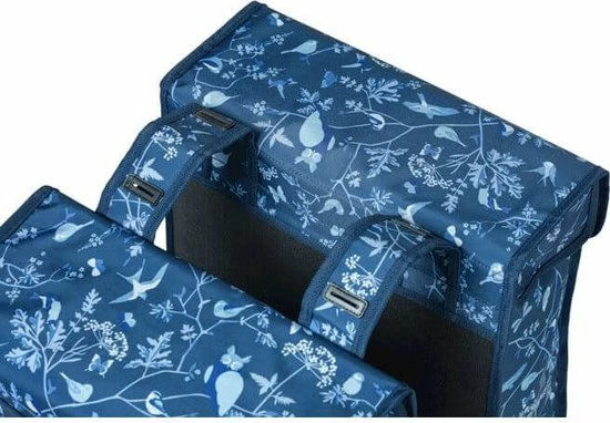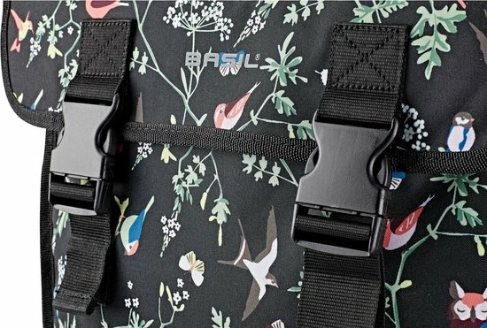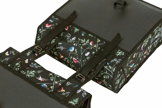 De Wanderlust Double bag is een dubbele zwarte fietstas met kleurrijke vogelprint. Met deze trendy fietstas ga jij fluitend naar de supermarkt of op bezoek bij die vriendin. Gaat het onderweg regenen? Dan zorgt het waterafstotende materiaal ervoor dat de inhoud van de tas droog blijft. De Basil Wanderlust dubbele fietstas bevestig je aan de bagagedrager met behulp van het Universal Bridge-systeem. Ze zijn er dus ook weer snel en makkelijk af te halen. De fietstas is afsluitbaar met behulp van kliksluiting. De fietstas is geschikt voor diverse bagagedragers (ook e-bikes). De reflectiedetails op de zijkanten zorgen ervoor dat beter zichtbaar bent in het donker. De inhoud van deze dubbele fietstas is 35 liter. Dit biedt heel wat ruimte voor je boodschappen, kleding of andere dagelijkse benodigdheden. De Basil Wanderlust Double Bag maakt deel uit van de Basil Wanderlust collectie. Deze tas is ook verkrijgbaar in de kleuren wit en rood. Wil je liever een enkele fietstas variant? Neem dan een kijkje hier. Eigenschappen: De reflecterende details zorgen voor extra zichtbaarheid in het donker. De fietstas kan tegen een regenbui door het waterafstotende polyester, maar zal na een dag in de regen niet meer kurkdroog zijn. Door de 2 banden kun je zo nodig een begagedrager, kinderzitje of snelbinders bevestigen. De fietstas is geschikt voor diverse bagagedragers (ook e-bikes).