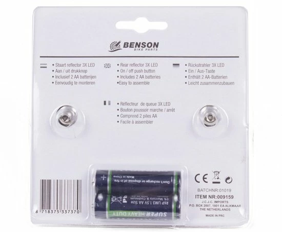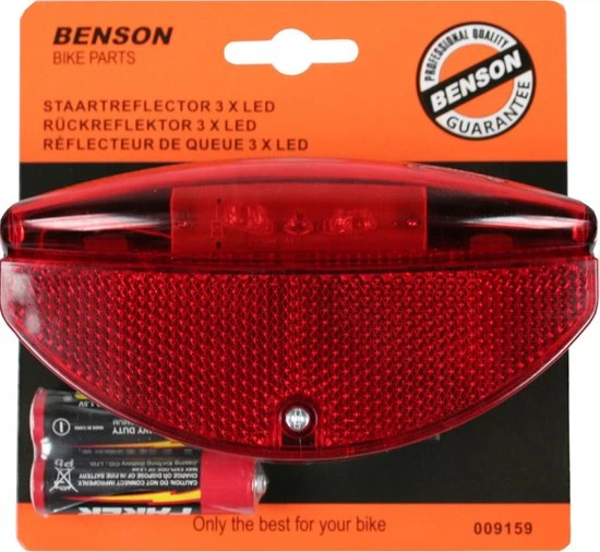 Deze fietsverlichting / fietsachterlicht heeft een aan/uit schakelaar en 3 verschillende standen: continu, knipper en uit. Deze staartreflector / achterlamp kan aan uw bagagedrager met de bevestigingsbouten van 8 cm / 80 mm.