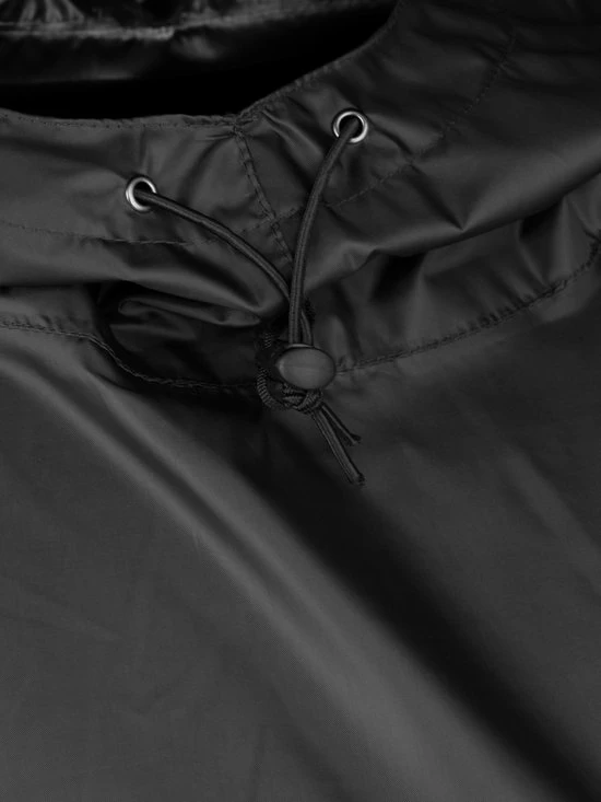 Hoogwaardig nylon, afgedichte naden en de vaste capuchon beschermen je tegen regen en wind. De hoge opstaande kraag kan gesloten worden met verstelbare koordjes. De regenponcho is een snelle oplossing tegen een regenbui en houdt u goed droog op de fiets, de brommer of tijdens het wandelen. De borstzak is ook een tasje om de regenponcho in op te bergen. Zo neemt u de regencape gemakkelijk onderweg mee. Wanneer u een goede waterdichte en lange regenponcho zoekt, dan is de Haps van BJ?RNSON zeker aan te raden en hierin zult u goed droog blijven. De regencape heeft handige reflecterende details voor extra zichtbaarheid en is snel aan te trekken over de kleding. Handig zijn de twee open heupzakken en de grote zak op de borst. De regenponcho is one size fits all en is geschikt voor zowel mannen als vrouwen. Met deze regenponcho kom je droog aan op je bestemming.