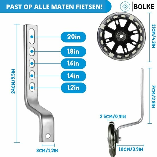 Bolke? Bolke – Zijwieltjes – 12-20 Inch – Zijwieltjes Met LED Lichtjes – Zijwieltjes Voor Kinderfiets – Blauw – 12 Inch/14 Inch/16 Inch/18 Inch/20 Inch – Zijwielen – Kinderfietsaccessoires