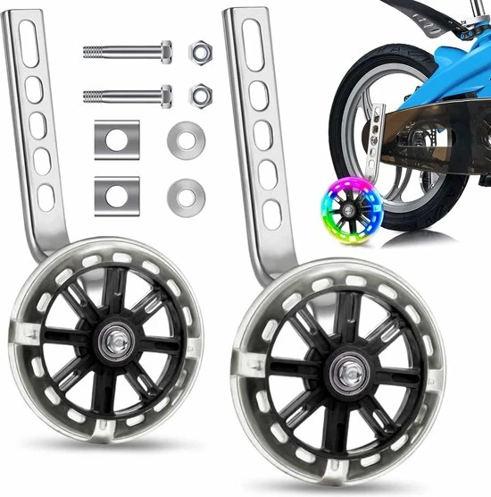 - [Eenvoudig te installeren] ? onze steunwielen zijn eenvoudig te installeren en uitgerust met verschillende accessoires. Daarom hoef je de steunwielen alleen met statieven te installeren, zodat je kinderen de fiets veilig kunnen gebruiken.