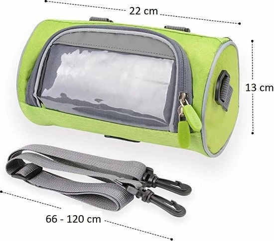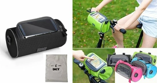 Handige compacte fietstas voor aan het stuur van uw fiets. Met klittenband aan de achterzijde gemakkelijk te bevestigen aan uw stuur en stuurpen. Het doorzichtige opbergvak aan de zijkant is handig om een telefoon of navigatie in op te bergen en u kunt zelfs uw touchscreen door het plastic heen blijven bedienen! Dankzij het waterafstotende polyester blijven uw spullen altijd droog. Wij leveren tevens een draagband mee zodat u het tasje ook als schoudertas kunt gebruiken. Bestel hem nu en kies voor de uitstekende kwaliteit en service van DICY!