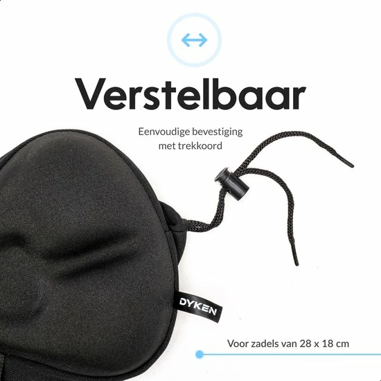 De Dyken zadelhoes biedt extra comfort voor stadsfietsen, racefietsen, mountainbike, elektrische fietsen & hometrainers met een zadel van 28 x 18 cm. Heb je een breder zadel? Kies dan voor de ?grootte variant? voor zadels van 28 x 26 cm.