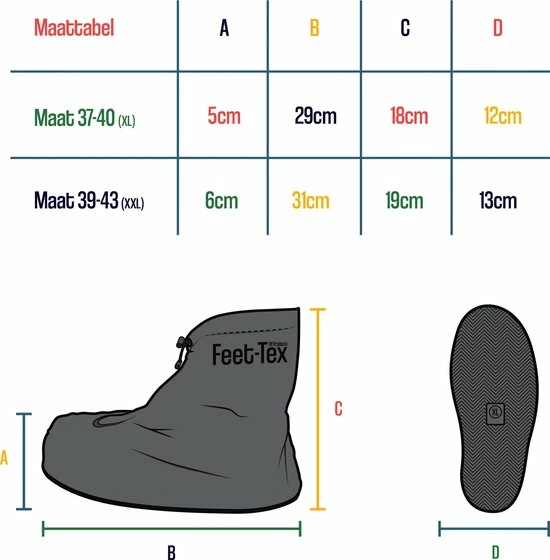 Ben je graag in de buitenlucht, maar wil jij je schoenen ook als nieuw houden? Dat kan nu met de waterdichte en vuilafstotende overschoenen van Feet Tex! Met de Feet Tex overschoenen houd je water en vuil buiten de deur en zorg je ervoor dat je schoenen als nieuw blijven! Twijfel je over de maat? Neem een maat groter, Ze vallen klein uit!
