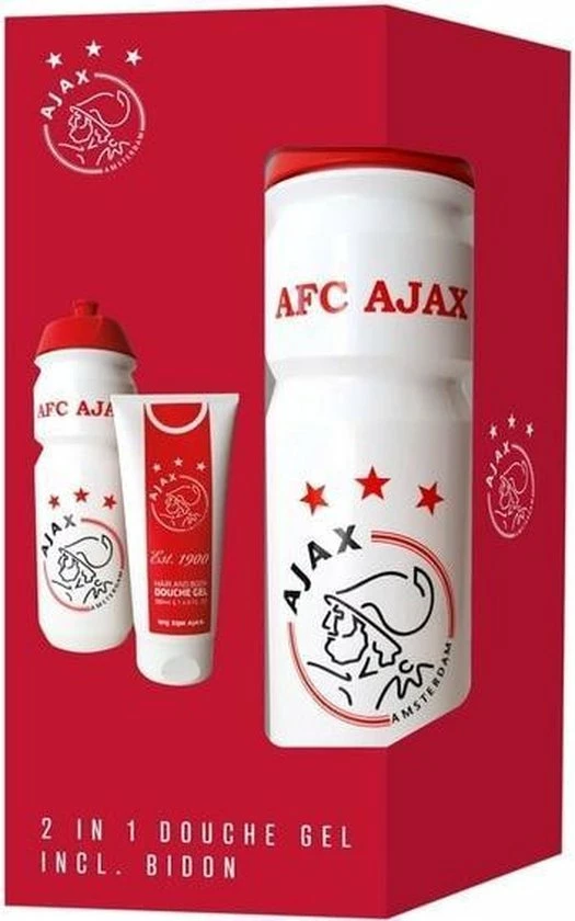 De set bestaat uit een Ajax bidon van 750ml en een Ajax douchegel van 200ml.