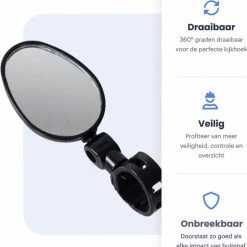 Merkloos Fietsspiegel – Links – E-bike – Fietsspiegel – Zwart