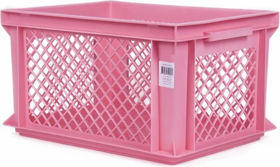 Deze fietskrat is van middel groot formaat en gemaakt vans stevig kunststof voor op de voordrager. De fiets krat heeft een geperforeerde bodem, is geschikt voor op een transportrek. Stevige en degelijke fietskrat van goede kwaliteit. Daarnaast is deze fietskrat is makkelijk aan alle kanten vast te maken met tigh rips. De formaat is groot genoeg voor een overvolle schoolrugtas zonder dat de fiets in breedte toeneemt. De maximale belading is afhankelijk van het maximaal toelaatbaar gewicht van de voordrager. Deze fietskrat is verkrijgbaar in meerdere kleuren zoals roze, grijs en zwart.