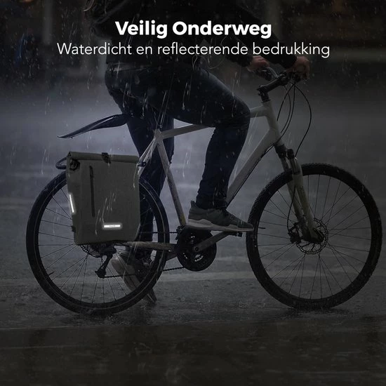 Met de LifeGoods Fietstas kan je er zeker van zijn dat je spullen droog blijven. De fietstas heeft een IPX5-rating. Dit betekent dat zelfs in een regenbui je spullen niet nat worden. Ook heeft de fietstas een reflecterend logo. Je bent dus altijd zichtbaar, ook op regenachtige dagen of in het donker.