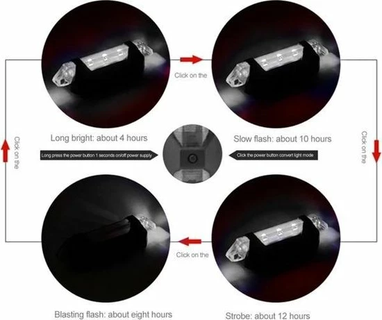 Tenslotte zijn de lampjes oplaadbaar, dus heb je nooit meer extra kosten van batterijen. Afhankelijk van de gebruikte modus gaat de accu tot 10 uur mee. Door het compacte design is de verlichting gemakkelijk mee te nemen en weer te monteren.