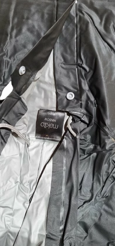 Regenjas met capuchon van stevig PVC met hitteverzegelde afwerking.