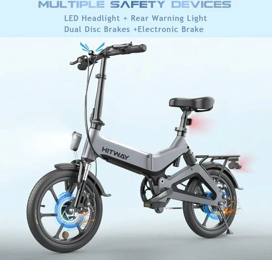 De Hitway 14F005 is een moderne elektrische fiets met een trendy ontwerp.