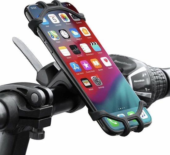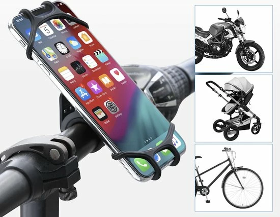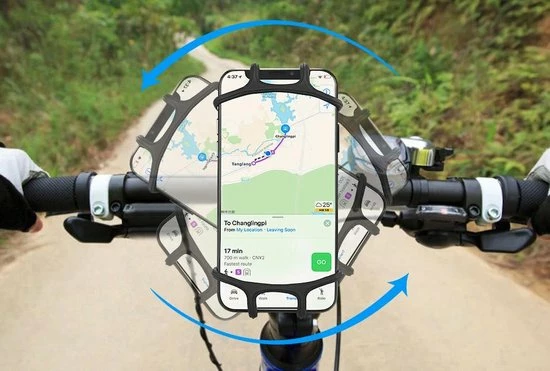 Deze simpele maar zo handige telefoonhouder voor de fiets, motor, scooter, buggy wandelwagen is geschikt voor elk merk telefoon. Deze praktische telefoonhouder kan heel gemakkelijk bevestigd worden aan een stuur zoals je kan zien op de foto. Ook is deze telefoonhouder in staat om 360 graden te draaien, hierdoor kan de telefoon in elke gewenste positie geplaatst worden!