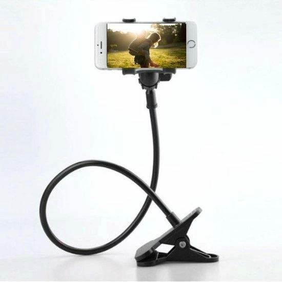 Stel je eens voor. Heerlijk een filmpje kijken in een luie houding, of lekker koken en tegelijkertijd genieten van je favoriete serie. Met deze universele mobiele telefoonhouder kan het allemaal!