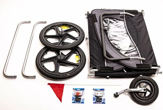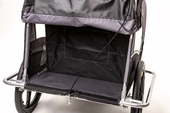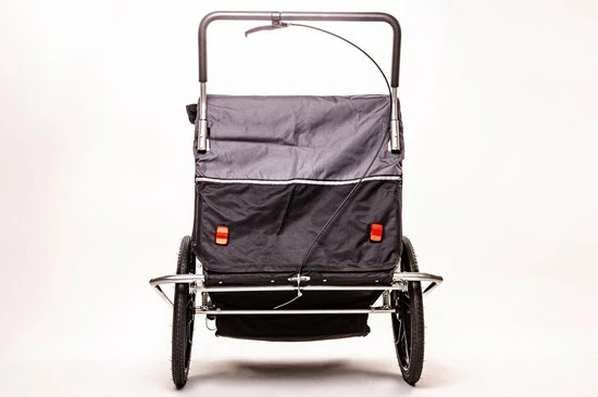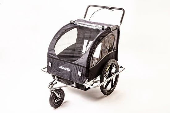 De Michezo kar kun je ook gebruiken wanneer je rustig wilt wandelen of een stukje wilt gaan joggen. Je kunt met een simpele handeling de fietskar omtoveren in een loopkar, hier is geen gereedschap voor nodig. Door middel van de handrem staat de kar in een mum van tijd stil. Het maximum draaggewicht van kar is 40 kilogram.