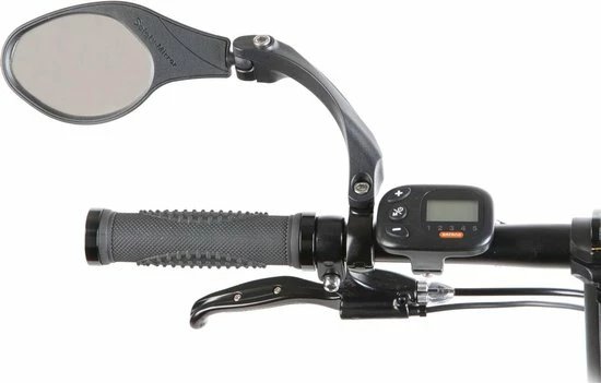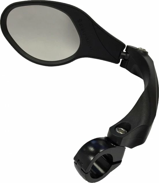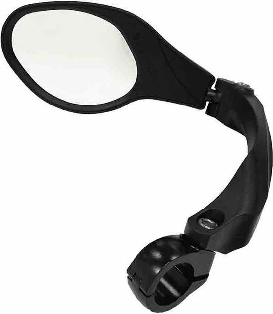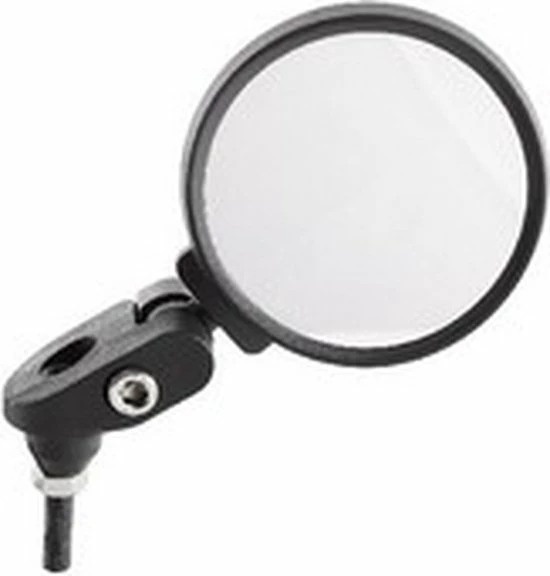 Mirage fietsspiegel de luxe draaibaar + klem op kaart. Kleur zwart. De spiegel is van onbreekbaar glas en verweerd niet. Behuizing en steun zijn van hoogwaardig kunstof. De bouten en metalen onderdelen zijn roestvrij. Voorzijde is voorzien van een reflector. Makkelijk instelbaar voor elke hoek. Aanbevolen voor gebruik bij hoge snelheden o.a.:race- of E-bikes/electrische fietsen. De spiegel moet aan de linkerzijde gemonteerd worden en is voor een stuur diameter van 22.2mm.