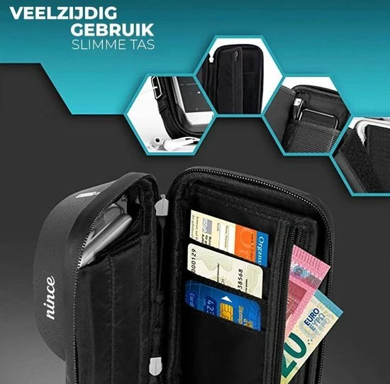 Deze slimme houder is voorzien van een stevige ritssluiting en gemaakt van krachtig materiaal zodat jij zonder zorgen op pad kan. Gecombineerd met de waterbestendige buitenkant en de stabiele interne structuur is je mobiel perfect beschermd.