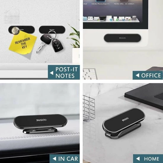 Verwijder de sticker aan de achterzijde van de magneet telefoonhouder. Plak deze op je favoriete vaste plek. Dit kan op je dashboard, thuis of een vaste oppervlak op werk. Jouw telefoon is van zichzelf niet magnetisch. Bij deze telefoonhouder worden daarom een dun magneet sticker geleverd. Plaatst deze aan de binnenkant van je telefoonhoesje of telefoon. De krachtige magneet zorgt ervoor dat de telefoon onder elke omstandigheid stevig aan de Yesido houder blijft hangen. Bekijk de pdf en videohandleiding voor een voorbeeld.
