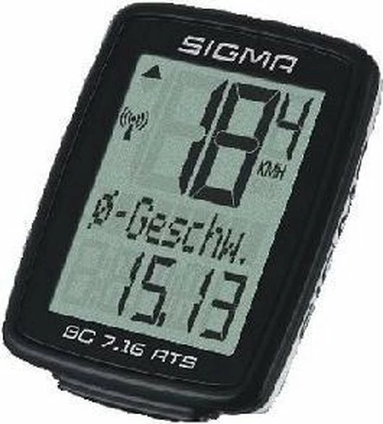 De Sigma BC 7.16 ATS is een draadloze fietscomputer voor de beginnende sportfietser of de fietser die graag langere ritten maakt. Het model meet naast je actuele snelheid ook de gemiddelde snelheid en gaat tot 100 uur mee. Zo kun je lange ritten maken en je gemiddelde in de gaten houden. Door de automatische start- en stopfunctie kloppen waarden als rittijd, gemiddelde snelheid en afstand altijd exact. De Sigma 7.16 heeft een groot display, een sportief design en is zonder gereedschap te bevestigen. Bovendien is het toestel draadloos, waardoor het een stuk gemakkelijker te bevestigen is.