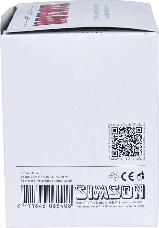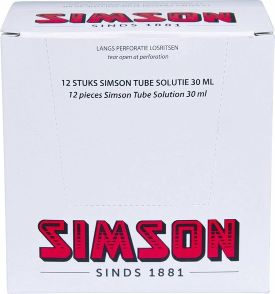 De Simson Solutie is onmisbaar voor iedere fietser. Deze Simson bandenlijm zit in een knijptube van 30ML en is geschikt voor het koud vulkaniseren van pleisters. De Simson Solutie is door zijn unieke formule sneldrogend. Na ongeveer 90 seconden kun je beginnen met het plakken van je band, zodat je snel weer op weg kunt.