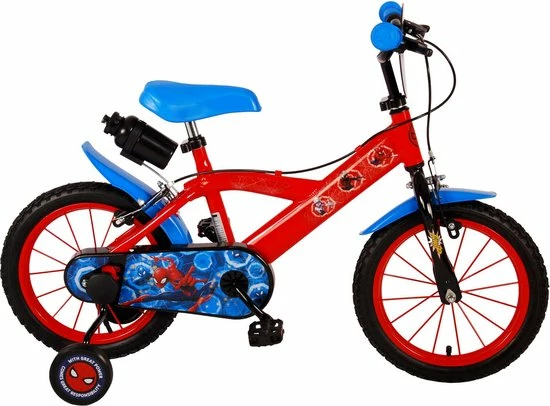 Veiligheid staat voorop! Daarom heeft deze gave fiets geen terugtraprem maar twee handremmen en afneembare zijwieltjes. Daarnaast heeft de fiets een leuke toeter. Ook aan het comfort is gedacht. De mooie rood met blauwe Spider-Man fiets is voorzien van een bidonhouder met bidon. Om zo lang mogelijk van de fiets te kunnen genieten zijn het zadel en stuur in hoogte verstelbaar.