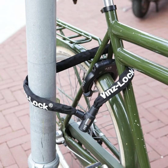 De 23mm dikke ketting is gemaakt van meerdere kleine schakels met een schakeldikte van 6mm, waardoor de ketting erg flexibel is en makkelijk om een paal of je zadel kan heen worden geslagen.