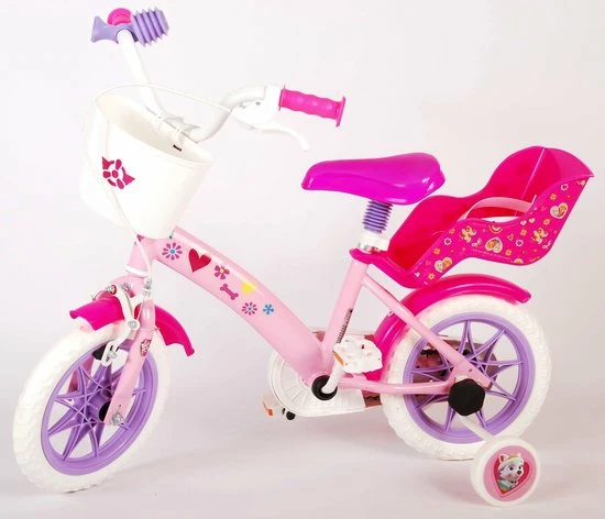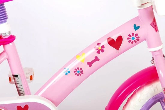 Veiligheid staat voorop! Daarom heeft deze gave fiets een doortrapsysteem waarmee het kind zowel voor- als achteruit kan fietsen, een handrem op het voorwiel en afneembare zijwieltjes om snel te leren fietsen. Daarnaast heeft de fiets een leuke toeter zodat u altijd weet wanneer uw kind er aan komt en een gesloten kettingkast. Ook aan het comfort is gedacht. De mooie roze Paw Patrol fiets met paarse accenten heeft sterke EVA schuim banden voor een aangename rit, een poppenzitje achter het zadel en een mandje om alle spulletjes mee te nemen. Om zo lang mogelijk van de fiets te kunnen genieten zijn het zadel en stuur in hoogte verstelbaar. Kortom: een topkwaliteit fiets voor een geweldige prijs!